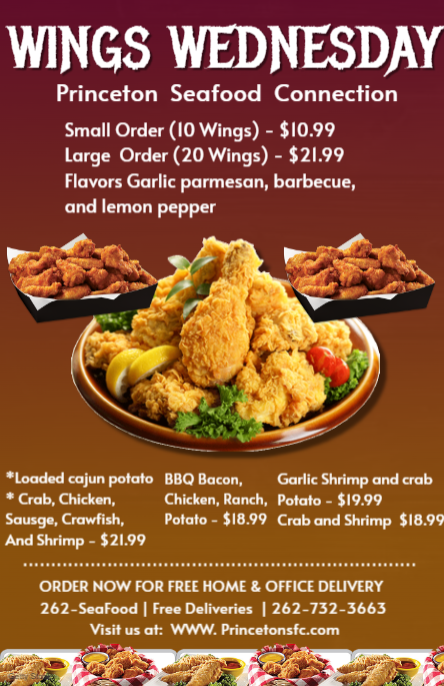 Here in Princeton if u want sea food but don't want to drive to get it, we have free delivers and can bring you that craving