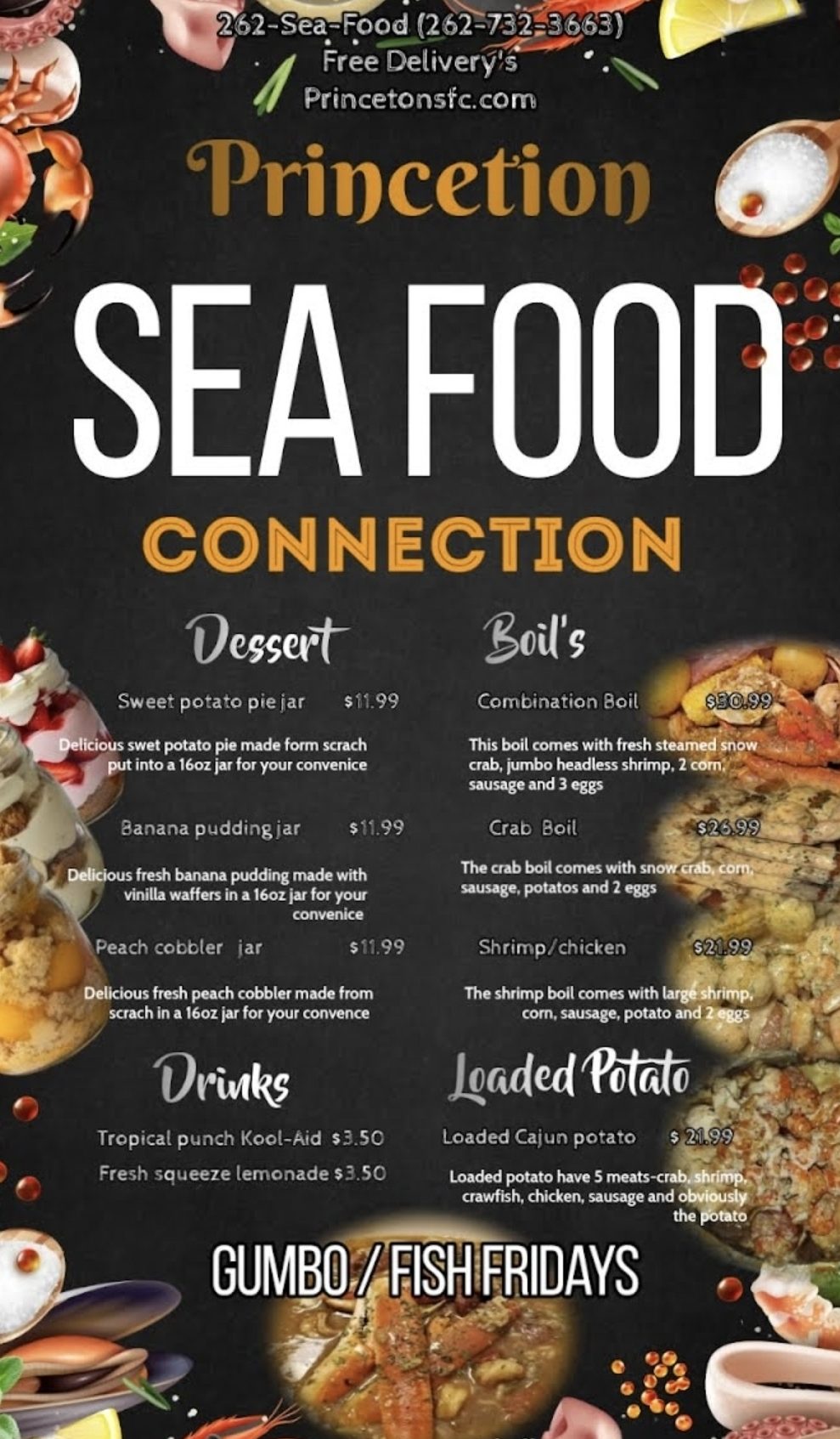 Here in Princeton if u want sea food but don't want to drive to get it, we have free delivers and can bring you that craving
